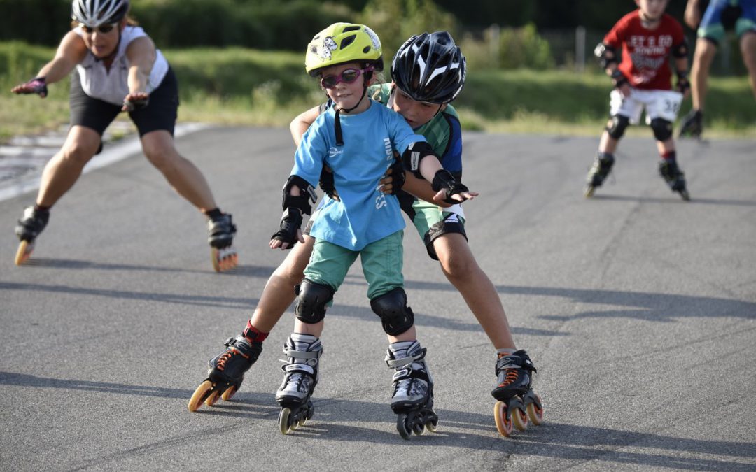 Für einmal fand dieser Kids On Skates Kurs an einem späten Samstagnachmittag statt. Obwohl es bereits fünf Uhr war, lagen die Temperaturen weiterhin bei 30 Grad. Wegen des herannahenden Gewitters am Abend, zwang die erhöhte Luftfeuchtigkeit zusätzlich zum schwitzen. Doch dies sollte kein Hindernis für unsere rund 50 Kids sein. Wenig beeindruckt von der schwülen Hitze, eher begeistert vom schönen Wetter und vom Skaten. Nach den Basistechniken ging es Schlag auf Schlag. Mit Spielen, Slaloms, Parcours und einer Rampe verfeinerten die Kleinen ihre Skatetechniken und bauten diese aus. Im Anschluss des 1.5 Stunden langen Kurses, hatten die Kids die Möglichkeit ihr Können auf der Kartbahn und vor Zuschauern unter Beweis zu stellen. Die Zuschauer waren sichtlich begeistert und auch die Kleinen hatten ihren Spass frei auf der Rennstrecke rumzuskaten.